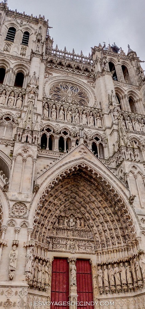 A l’intérieur de la cathédrale, on retrouve de nombreux vitraux, qui ne sont malheureusement pas d’origine. Par contre, je vous mets au défi de rester indifférent devant la façade de la cathédrale d’Amiens où l’on peut voir de nombreuses sculptures.