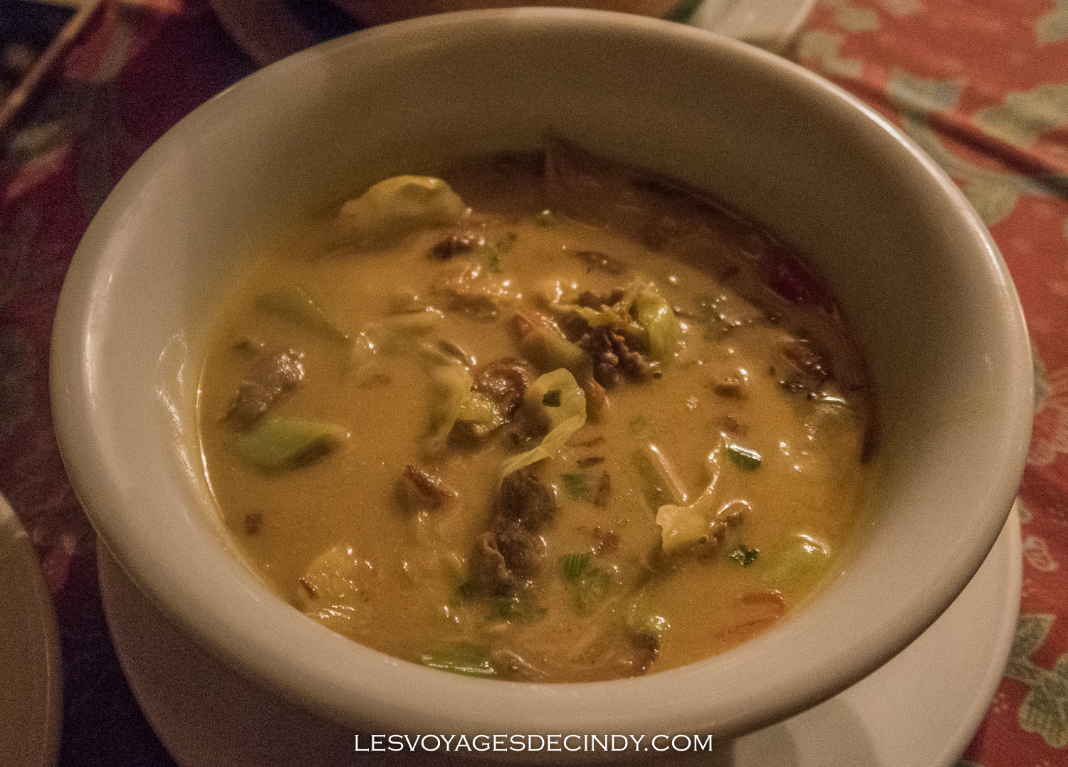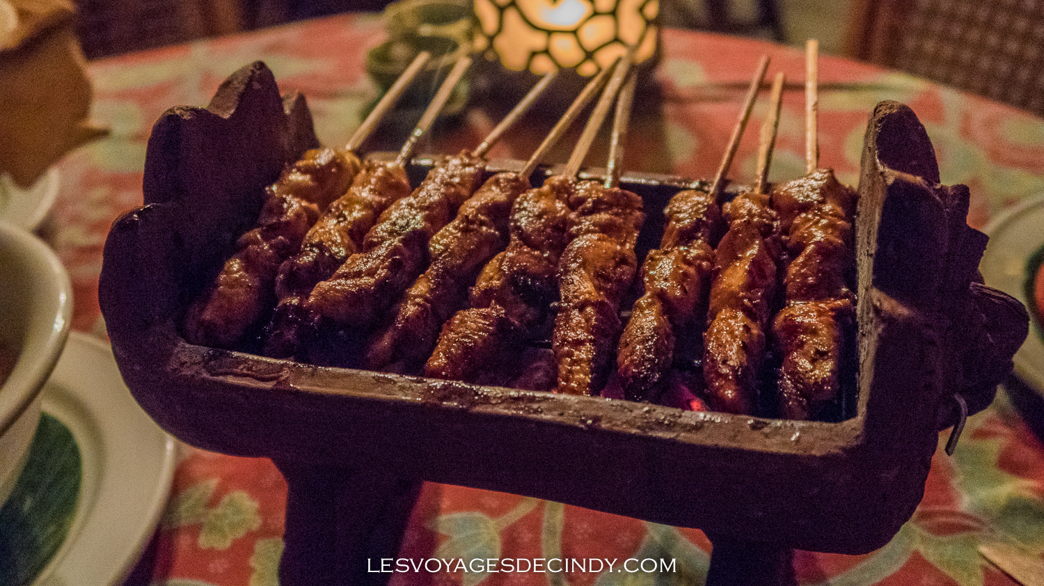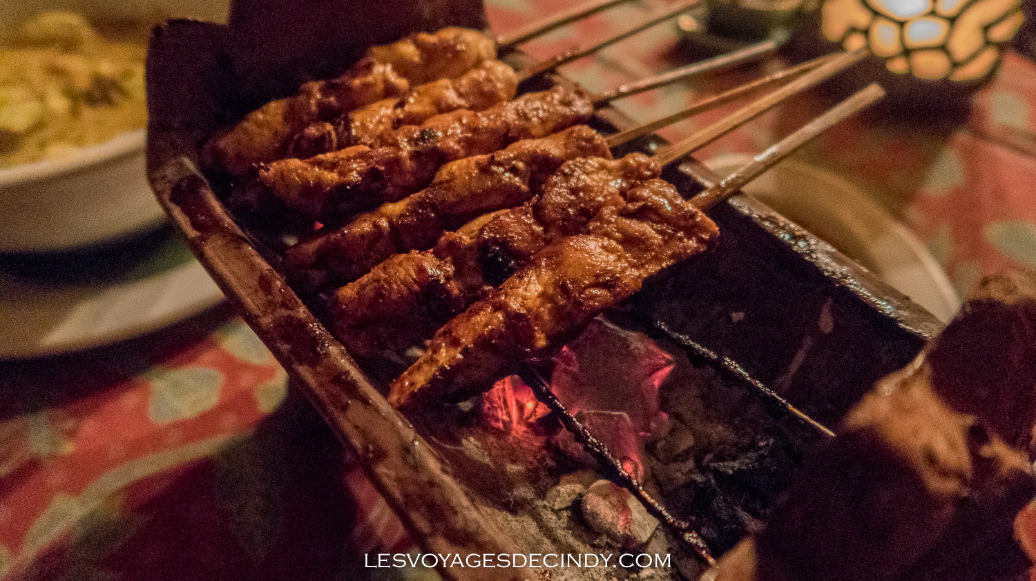 Pour manger, nous avons commandé des brochettes satay ayam qui nous ont été servies sur un mini barbecue au charbon. Elles sont arrivées en crépitant haha j’adore. Ensuite, en plat pour changer, j’ai pris un plat d’agneau au curry qui était un peu épicé. Christophe, lui, a pris un nasi goreng.