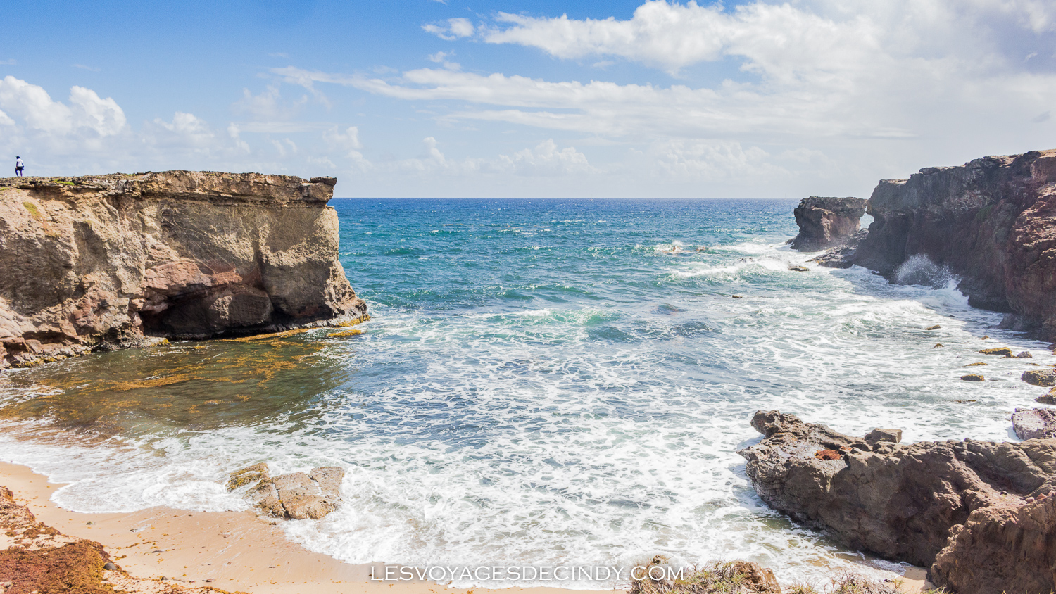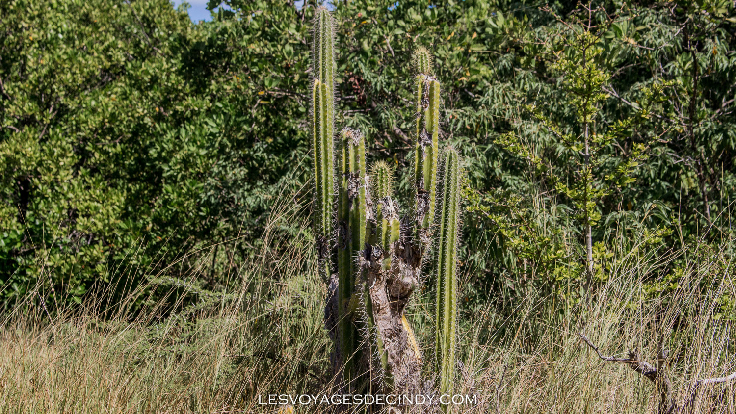 Une fois arrivés aux Salines, il faut tourner à gauche. On a eu un peu de mal à trouver mais il ne faut pas avoir peur. La route est un peu abîmée, vous verrez qu’il y a des panneaux d’indications de la randonnée au bord de la route mais il ne faut pas s’arrêter là. Roulez jusqu’à ce que vous ne puissiez plus. Le sentier débute à la fin de la plage de l’anse à Prunes.