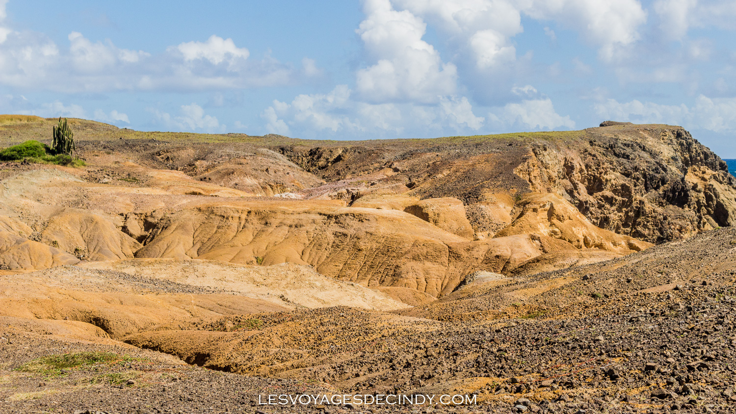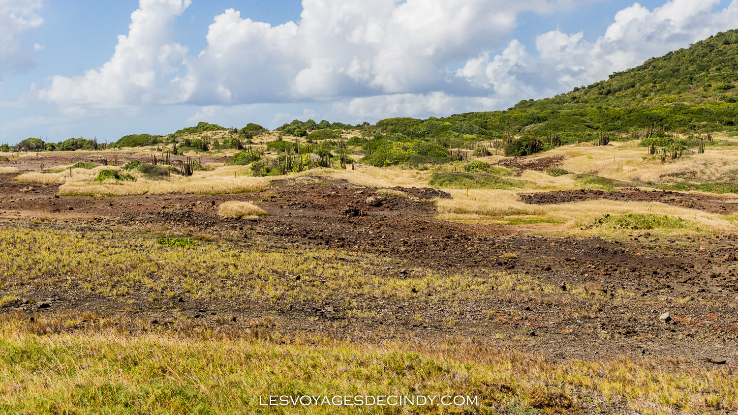 En suivant le sentier qui longe la côte, vous finirez par arriver à la savane des pétrifications. Mais woaw ! Quel décor ! On se croirait en plein milieu du désert ou tout droit sorti d’un film de western. Que vient faire ici ce paysage si étonnant sur une île connue pour sa végétation luxuriante ?