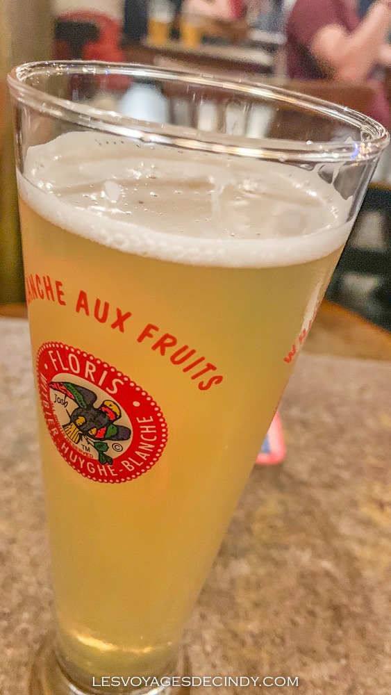 On s’est posés dans le très connu bar Délirium. Ce bar propose une quantité incroyable de bières. On y est resté quelques minutes après dîner. Il y avait beaucoup de monde mais, on n’a pas eu de problème à trouver une table. En plus, la bière est pas trop chère je trouve. J’ai testé la bière blanche à la pomme. C’était parfait, frais et fruité !